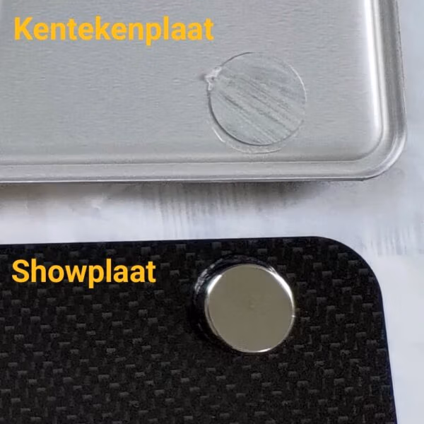 De magneten zijn voor het oog niet zichtbaar doordat ze op de achterzijde van de kentekenplaat worden geplaatst.