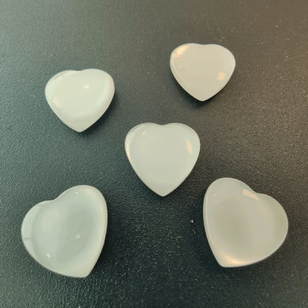 Het melkglaseffect met subtiele zilverglans maakt deze koelkastmagneten tot echte blikvangers. Op een zwart magneetbord komen ze nog beter tot hun recht: het contrast tussen melkwit en zwart geeft een chique en moderne uitstraling. Dankzij hun hartvorm voegen ze een speelse en romantische touch toe aan je interieur.