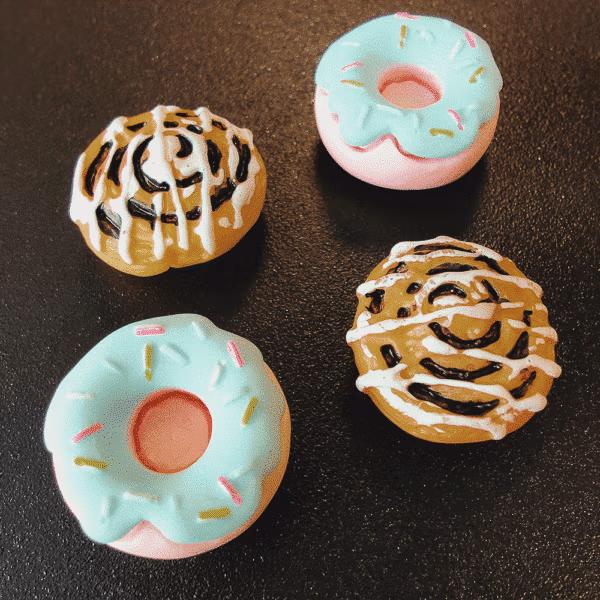 - Set van 4 koelkastmagneetjes met 2 donuts en 2 kaneelbroodjes designs.