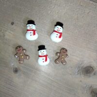 - Drie sneeuwpopjes en twee speculaaspopjes, perfect voor de feestdagen of als winterse decoratie