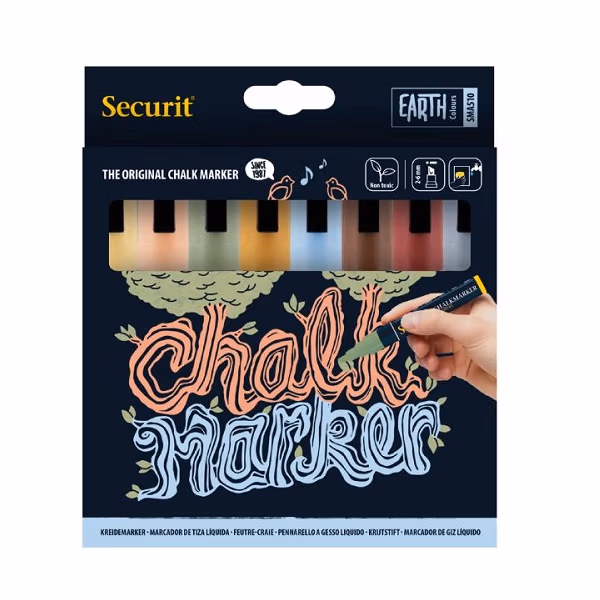 Deze Securit krijtstiften zijn de ideale partner voor je magneetborden. De acht zorgvuldig geselecteerde aarde-achtige kleuren combineren prachtig met elke kleur magneetbord en zorgen altijd voor een professioneel, stijlvol resultaat dat opvalt.