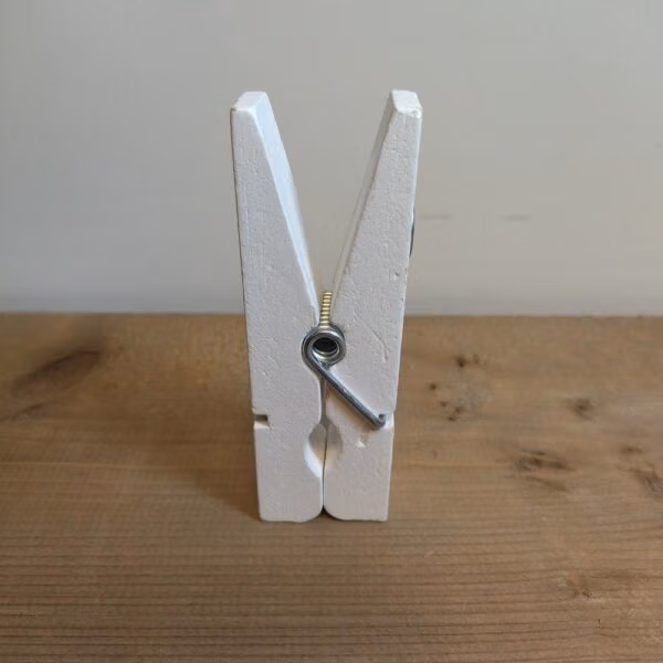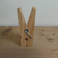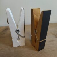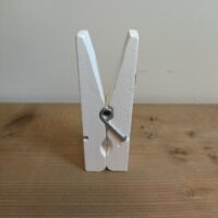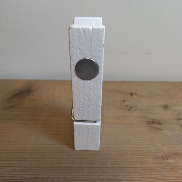 - Witte houten magneetknijper met krijtbaar oppervlak: Net als de andere knijpers 99x20mm groot, met een 13mm magneet en een beschrijfbaar oppervlak.