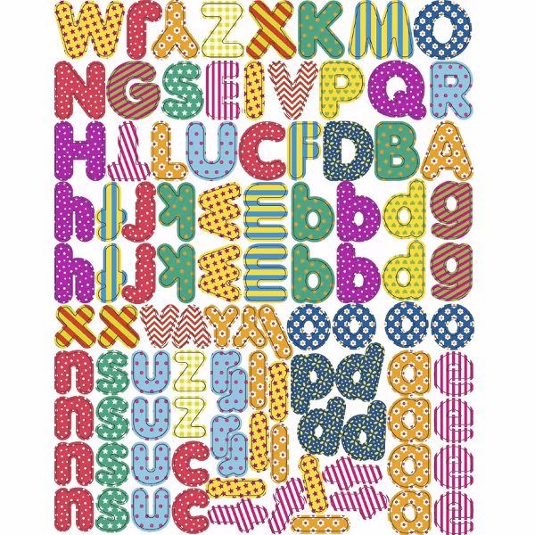 Magneet letters (honderd stuks) met vrolijke kleuren.