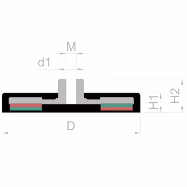 Magneet met Rubbercoating en Draadbus 43mm: Veelzijdige Kracht met Beschermende Laag