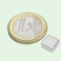 Houdkracht van circa 1,5 kg in een compact blokformaat van 8x8x4 mm. Neodymium N45 met vernikkelde coating voor duurzame prestaties, leverbaar vanaf 10 stuks en verder per 5.