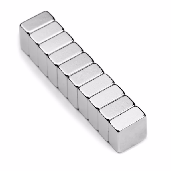 Blokmagneet 8 x 8 x 4 mm van Neodymium N45, vernikkeld, met een houdkracht van circa 1,5 kg en een schuifkracht van ongeveer 300 gram. Compact en sterk voor technische en precisietoepassingen. Bestelbaar vanaf 10 stuks, daarna oplopend per 5.