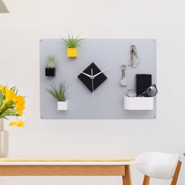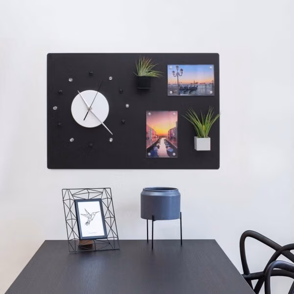 Het oppervlak is magnetisch en glad afgewerkt, zodat notities, foto’s en herinneringen overzichtelijk op hun plek blijven. In combinatie met geschikte magneten voor magneetborden blijft alles netjes hangen zonder te verschuiven. Het bord is verkrijgbaar in zwart, beige, wit en zilvergrijs – kleuren die bewust rustig zijn gekozen en goed aansluiten bij verschillende interieurstijlen.
