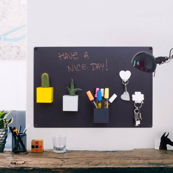 Doordat het bord zowel magnetisch als beschrijfbaar is, kun je afwisselen tussen korte notities, tekeningen of vaste herinneringen. Dat maakt het geschikt voor gezinnen, thuiswerkplekken en gedeelde ruimtes waar overzicht en flexibiliteit belangrijk zijn.
