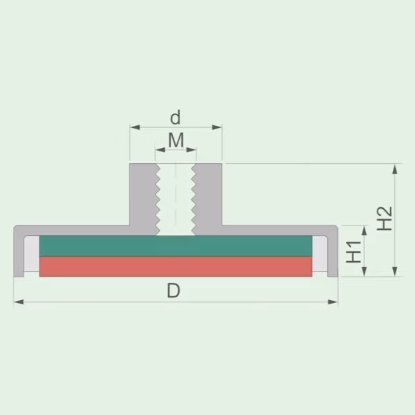 Potmagneet in een stalen pot, met een draadbus schroefdraad M4 en een doorsnede van 20mm.