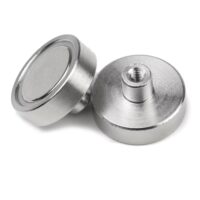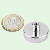 Potmagneet met 25 mm doorsnede heeft een draadeinde met inwendig schroefdraad