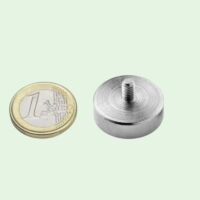 Potmagneet met 25 mm doorsnede heeft een draadeinde met uitwendig schroefdraad