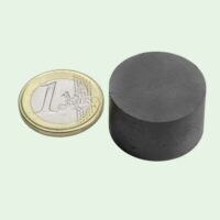 Schijfmagneet van ferriet. Voor zowel binnen als buitengebruik geschikt. Minder krachtig dan Neodymium magneten.