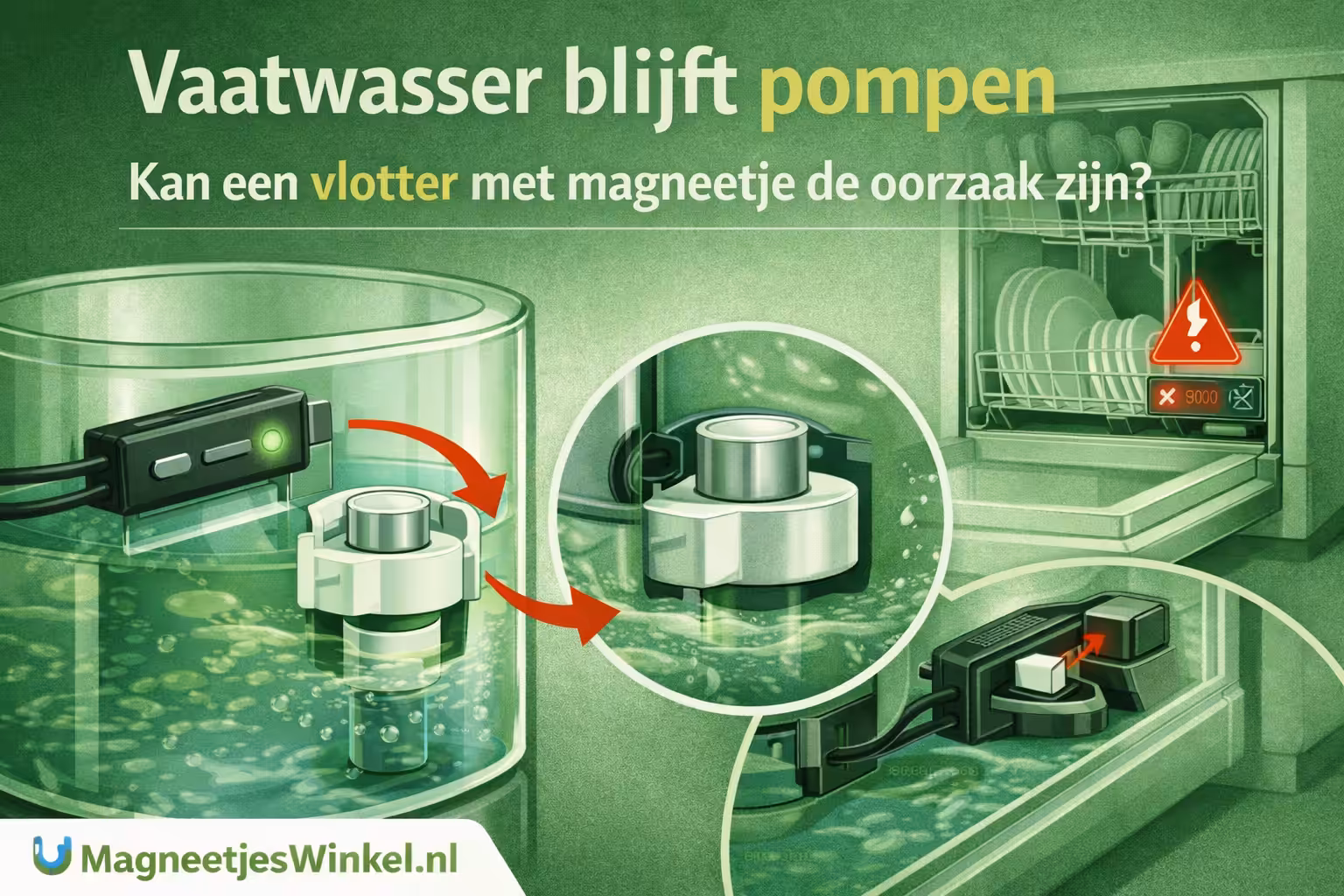 Hoe een magnetische vlotter werkt en waarom een vaatwasser soms blijft pompen.