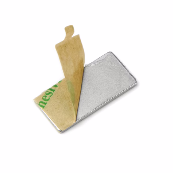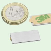 Zelfklevende Neodymium N35 blokmagneetjes 25 x 12 x 1 mm. Handig te plakken zonder vieze handen door de sterke 3M kleeflaag.
